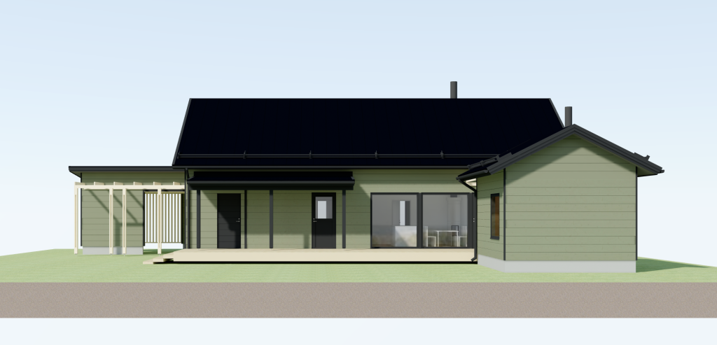 Kokonaisuutta täydentää talon yhteydessä oleva autokatos sekä erillinen saunarakennus, jotka lisäävät asumismukavuutta ja viimeistelevät pihapiirin toimivaksi kokonaisuudeksi.