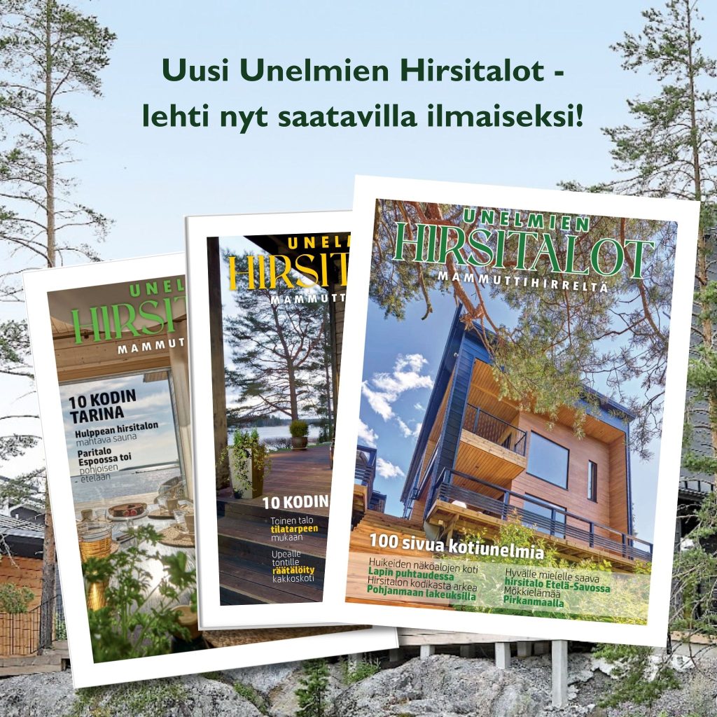 Etsitkö taloa, joka on yhtä aikaa yksilöllinen, terveellinen ja ekologinen? Mammuttihirren Talokirjat ja Unelmien Hirsitalot -lehdet ovat täynnä inspiraatiota, suomalaisten hirsitalorakentajien tarinoita sekä käytännön tietoa rakentamisesta. Uusi Unelmien Hirsitalot III -lehti on nyt julkaistu. Pääset lataamaan sen maksutta alta.