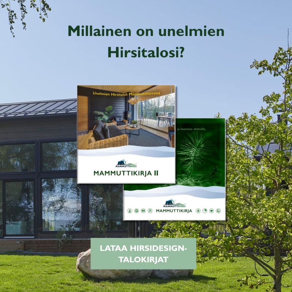 Jos kaipaat konkreettisempaa otetta, tule käymään oikeassa Mammuttikodissa. Paikallisissa hirsitalonäyttelyissä pääset näkemään, miltä elämä hirren keskellä tuntuu – ja nappaat samalla mukaasi painetut Talokirjat ja Unelmien Hirsitalot -lehden.